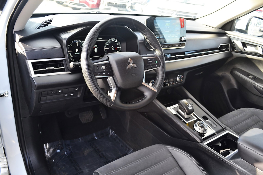 Strut Front Suspension w/Coil Springs, Speed Sensitive Rain Detecting Variable Intermittent Wipers w/Heated Wiper Park, Smart Device Remote Engine Start, Single Stainless Steel Exhaust, Side Impact Beams, Seats w/Leatherette Back Material, Right Side Camera, Remote Releases -Inc: Power Cargo Access and Mechanical Fuel, Remote Keyless Entry w/Integrated Key Transmitter, Illuminated Entry, Illuminated Ignition Switch and Panic Button, Regenerative 4-Wheel Disc Brakes w/4-Wheel ABS, Front And Rear Vented Discs, Brake Assist, Hill Hold Control and Electric Parking Brake, Redundant Digital Speedometer, Rear Cupholder, Rear Child Safety Locks, Rear Automatic Emergency Braking, Real-Time Traffic Display, Radio: AM/FM 9 Smartphone Link Display Audio -inc: navigation system, Apple CarPlay and Android Auto, SiriusXM satellite radio (subscription required) w/90 day SXM All Access and SXM Traffic (subscription required) & Travel Link subscription, HD Radio, Mitsubishi Connect w/safeguard and remote services (mobile app enrollment required), steering wheel audio and phone controls w/voice recognition, front USB-C and USB-A port, 6 speakers and Bluetooth wireless technology, Radio w/Seek-Scan, Clock, Speed Compensated Volume Control and Radio Data System, Proximity Key For Doors And Push Button Start, Power Rear Windows and Fixed 3rd Row Windows, Power Liftgate Rear Cargo Access.